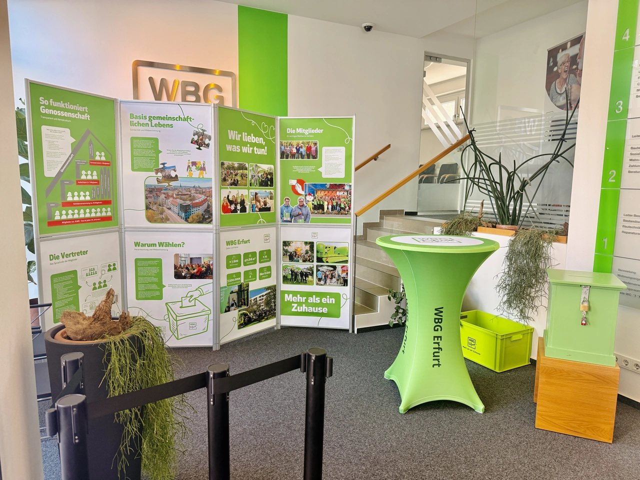 Parallel zur Stimmabgabe informierten wir mit passenden Aufstellern noch einmal über das Prinzip der Genossenschaft sowie die wichtige Rolle der Vertreterinnen und Vertreter. Diese bilden das zentrale Bindeglied zwischen Mitgliedern und Genossenschaft und tragen wesentlich dazu bei, Entscheidungen gemeinschaftlich und transparent zu gestalten.